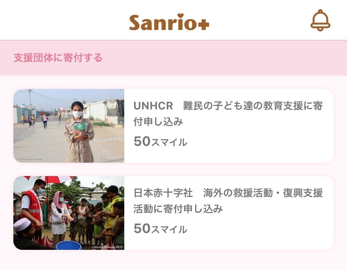 辻󠄀:サンリオの無料会員サービス「Sanrio+」のポイントサービスの寄付のページから、日本赤十字社やUNHCRに寄付することができるんです。貯めた「スマイル」(ポイント)を寄付支援につなげられる取り組みなんですよ。