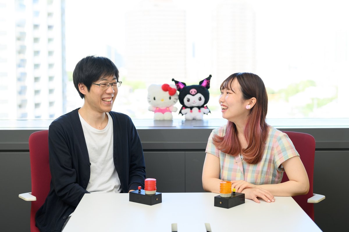 山本朱美(写真右)/ 2019年に株式会社サンリオに入社。入社後はライセンス営業部門にデザイナーとして配属され、主にライセンシーに向けたデザイン制作を担当。SanrioTimesのデザインも担当。