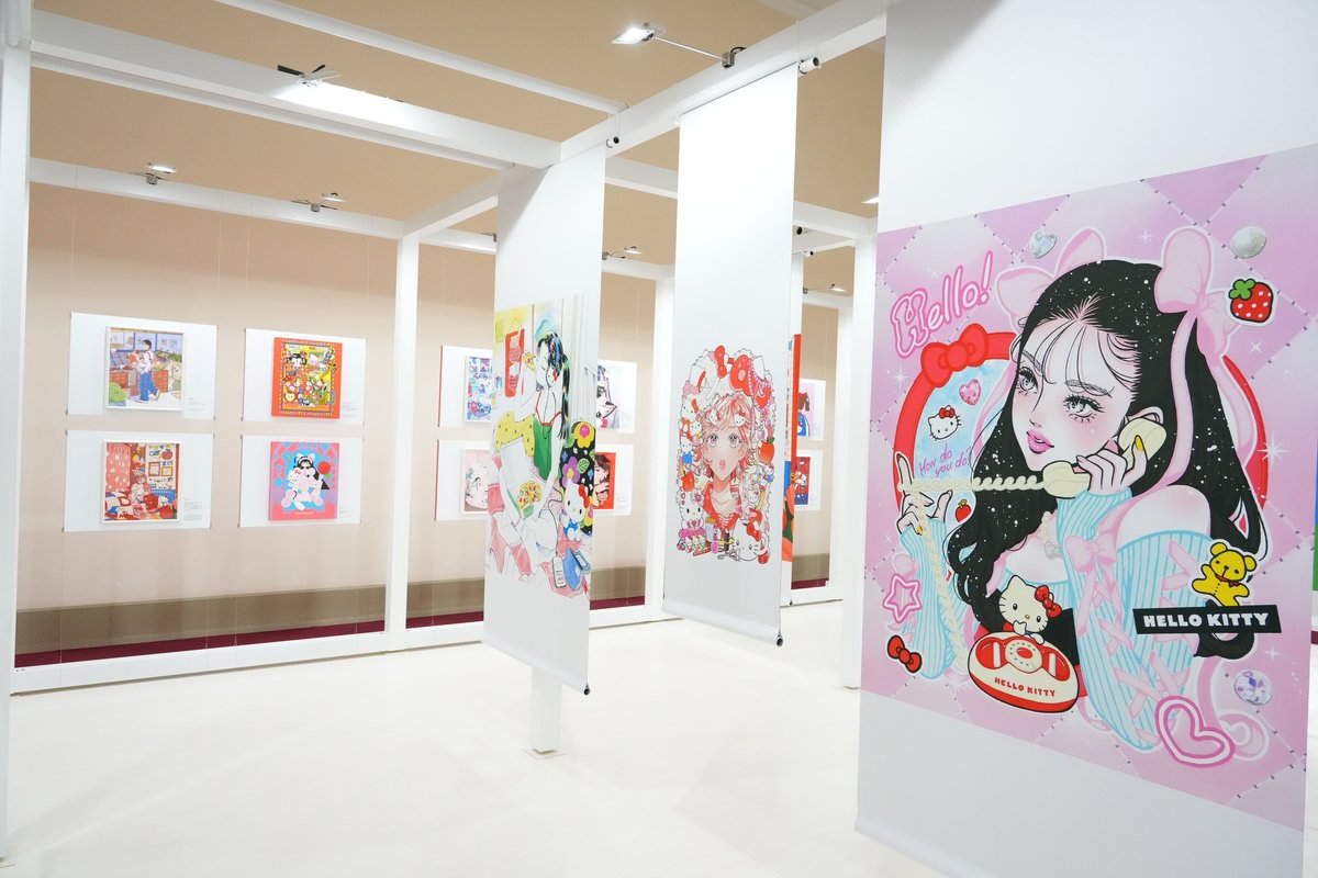 5章では、本展のために描き下ろされた(※一部を除く)30人のアーティストによる「わたしとキティ」をテーマにしたイラストレーションが展示されています。
